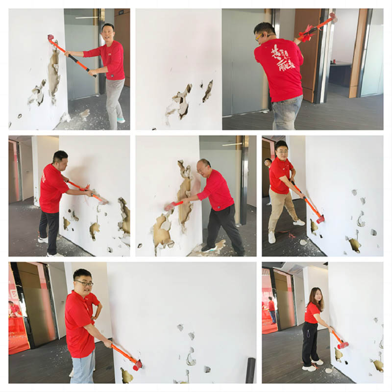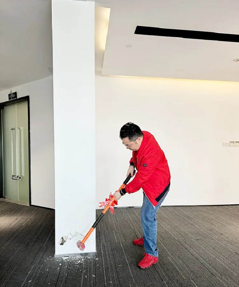紅桌、紅錘、紅毯,色澤鮮亮紅潤(rùn)的乳豬,紅紅火火!一錘開工大吉,二錘財(cái)源廣進(jìn),三錘萬(wàn)事如意!伴隨著禮花的綻放,合景人手握禮錘,一同為新辦公區(qū)裝修開工儀式揭開序幕。在熱烈的掌聲中,大家共同慶祝辦公樓裝修工程的正式啟動(dòng)!